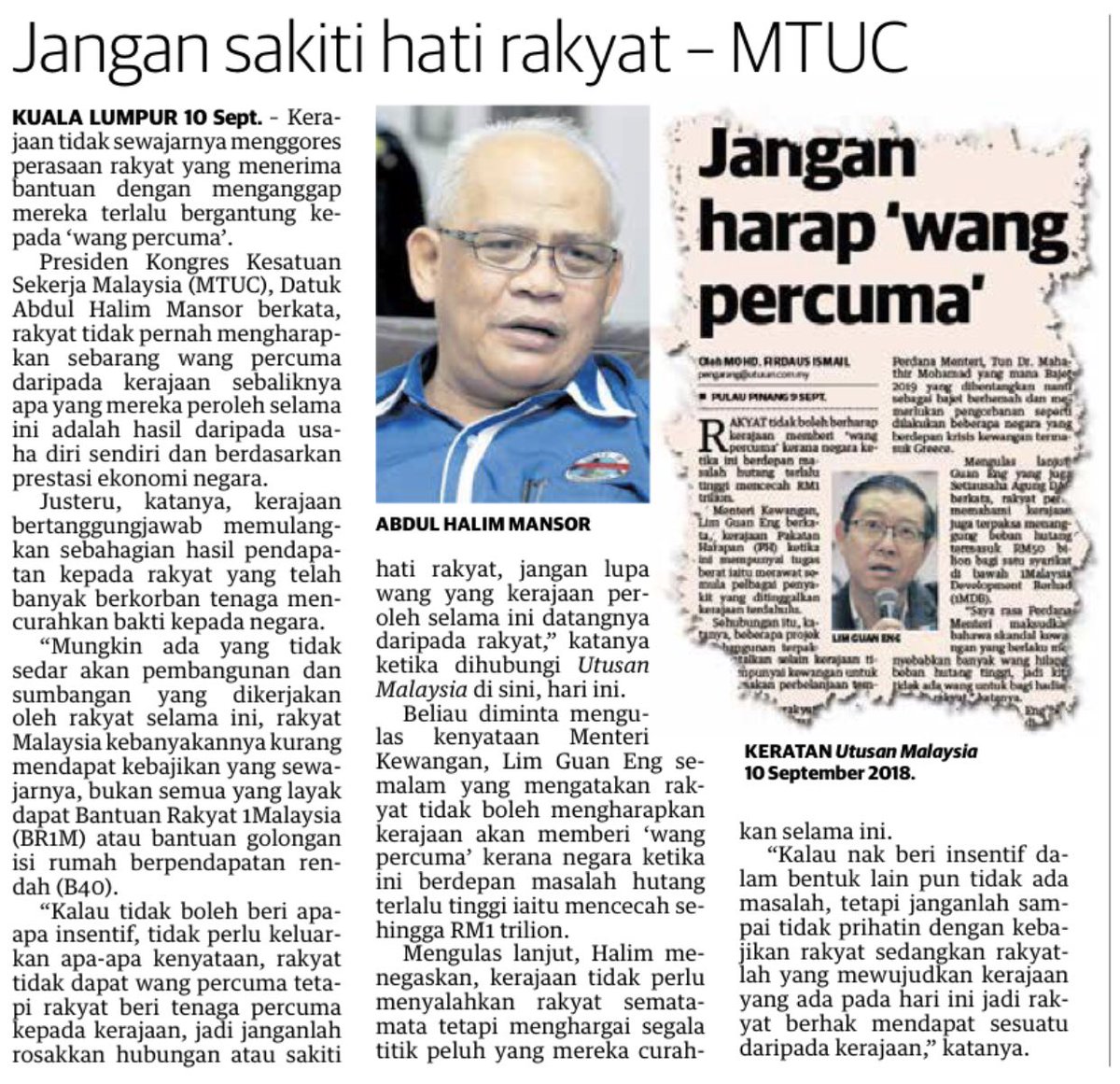 Twitter 上的 Ahmad B Maslan Jangan Harap Wang Percuma Kata Guanenglim Jangan Sakiti Hati Rakyat Kata Mtuc Laporan Utusan Smlm Amp Hari Ini Https T Co Wsneynmylp Twitter