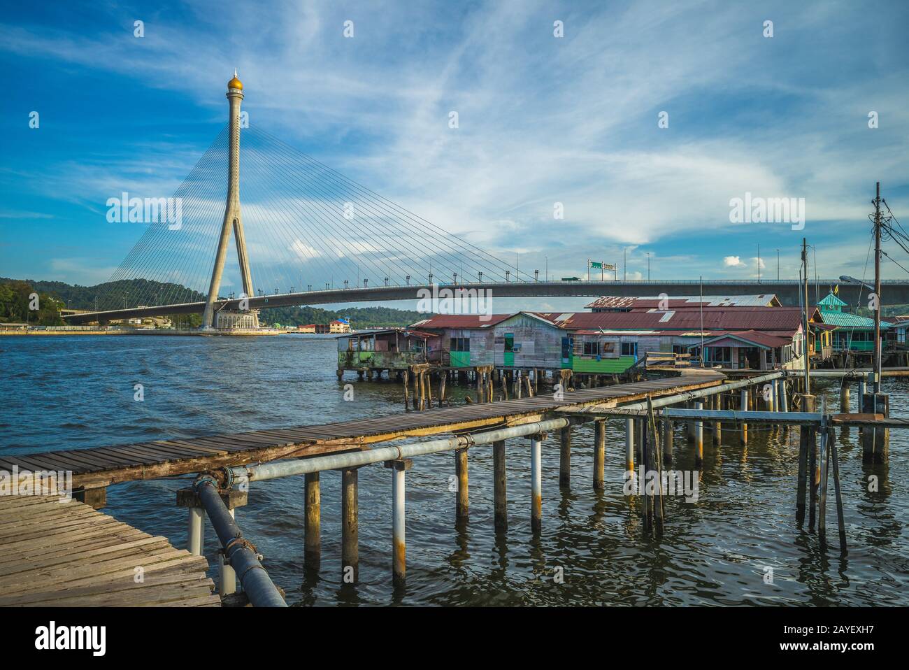 Sungai Kebun Bridge And Kampong Ayer In Brunei Stock Photo Alamy
